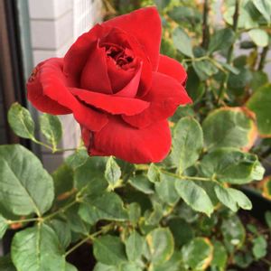 秋のベルサイユの薔薇🌹 一つ目が綺麗に咲きました! 植えてもうすぐ2年が経ちますが、この子は優等生、直径5センチに近い幹に育っています^_^