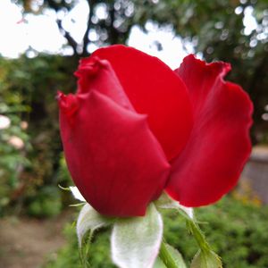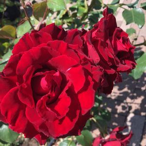 我が家の薔薇⑥ ベルサイユの薔薇✨😆💓 無事に咲いてくれましたー😊🙌 ベルベットな感じに見えて 意外と薄く乾いた質感😌 なんとも言えない美しい深い赤✨ ありがとうねー😊
