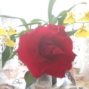 近所の人か観光客の人か 我が家の薔薇🌹を見て褒めてくれたので、パシャリ📷! 雨☔️が続くと大輪の花はグッタリですが、、