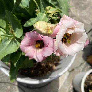 ホワイトのトルコ桔梗 花の終わり頃ですが、ふわふわと咲いています😊