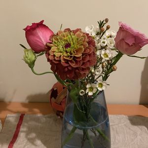 こんにちは🌸 薄曇りだった空には 灰色の雲が出てきて下り坂 明日からまた雨予報☔️ 午前中の地震で少し揺れましたが 久しぶりの揺れにビックリ‼️😳 ここ最近は天候が目まぐるしく変化し 自然災害による被害も各地で発生し 気持ちも暗くなりがちです🥲 大雨の被害に遭われた方々には お見舞い申し上げます。 まだこれから悪天候が続きます 皆様ご注意を‼️ 少しでも気分をパッと明るくほっこりと✨ 先程、お花屋さんへ行き トルコ桔梗さんを買ってきました😋 またまたガーベラさんもご一緒に‼️😅 薄いピンクの入ったかわいい子💖 素敵な午後をお過ごし下さい🤗
