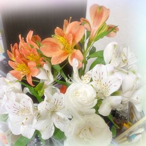 子供たち👧全員連れて、かかりつけの皮膚科&アレルギー科の病院🏥にいったら、長女、今日が8歳のお誕生日だとカルテを見た先生がお花をプレゼントしてくれました♡ きらり皮フ科の院長先生、看護師さん、受付のお姉さん、ありがとうございました❤️ これ、ちょっとでも長くうちにいて欲しいんだけど、水差し、挿木、ドライフラワー、何でも挑戦したいけど、1番良い方法は何だろ❔