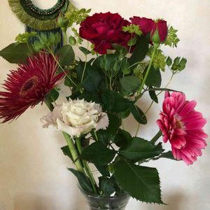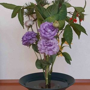 お正月用に生けました 手前にあるのはトルコ桔梗です 花びらがとても優雅です(*^^*) 今年は、沢山の花を咲かすことができ、充実した一年でした 来年もガーデニング楽しみます🎵 皆さまにとって良い一年になりますように