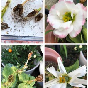 トルコキキョウの 花後 と 種 トルコキキョウの花後を 花弁を 開いて 見てみました 黄色い 蝶の様な 蕊は 柱頭 でしたね トルコキキョウの種 ゴンゴンさんの トルコキキョウの お花の蕊に 蝶が みえたから その蝶に 見えたものが 気になって トルコキキョウを みにいったら 花後で 花弁が 閉じていたので 手で 開けました と言うのが このpic の 真意です あはは🤣🤣🤣 でしたね