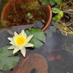 角型タライに姫睡蓮を追加😄 コウホネ には花芽が出てきてるけど 開花はいつになるかな🤔
