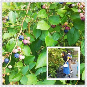 終わりの近い *ブルーベリー* 小3の孫と、早起きして、 ブルーベリー狩りをしました。 冷凍しておいた取り置き分とあわせて、 2㎏。 ジャムを煮ました。 とっても 美味しいです。💜💜💙💜💜