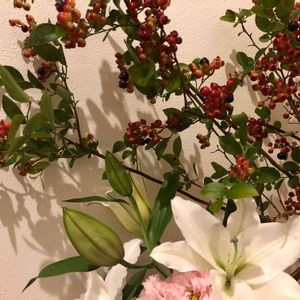 裏庭のブルーベリー。。。 待てずに? 夏真っ盛りでリビングに切り花🌷が長持ちせずに生けました。