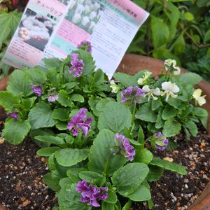 寄せ植え *ビオラ* この子もビオラロカハーツパステルミックス、ウィンティの苗と一緒に寄せました。 家の種撒きウィンティは、未だ小さいけど、この子はもう蕾が出ています。(ピーチ)🩷