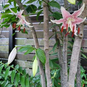 *カノコユリ* 今朝、ヤマボウシの木の下の鹿の子百合が咲きました。 木陰で花数は少ないが良い感じ~。😆💕✨ 日当たりの良い子は、蕾が白く色づいてもうすぐのようです。 🏷️金曜日の蕾たちに