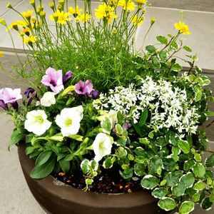 夏に向けての寄せ植え プミラは株分けして前後に分けました