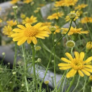 《ダーベルグデージー》 黄色い野菊を思わせる小花が、株を覆うように次々と咲き続けます🌼 小花ですが名わき役ともいえる花で、四季咲き性があり、春から初冬まで、ほとんど途切れることなく花が咲きます🤭🌼