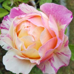 お早う御座います☀ 朝の水遣りがヒンヤリとして気持ちいいです☄️🎶 クロード・モネ開花です💞 ピンクに淡いイエローの絞りが、エドワール・マネとは又違った華やかさがあります(✿^‿^)