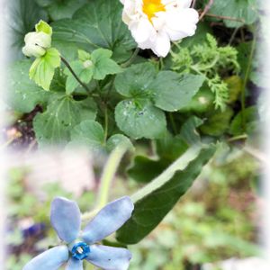 八重の秋明菊がやっと一輪開花(๑˃̵ᴗ˂̵) 蕾がたくさんあるので、待ち通しいなぁ💗 去年赤札で迎えたオキシペタラム こちらも一輪開花😁 今日はお仕事なのに、虫刺されからか 瞼が腫れてる😥 テンション下がる朝です😂