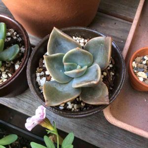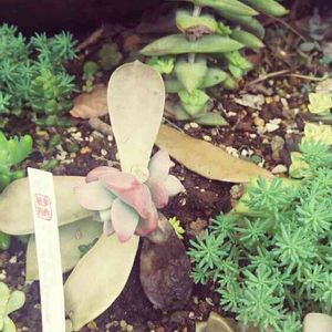 あれ(・¬・)この子鉢が小さくてこの間一回りでかいのに植え替えたばかりなんだがまた窮屈そうになってる(・¬・) もしかして巨大化する子なのかな(><)そして傾き具合もやばいし葉が変だ(><) とりあえずチョンパするか(´・ω・`)