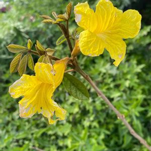 『イペ』『イペー』の花 初めて見た時は 鮮烈な印象でした💛🔍👀 なんだろう⁉️ 大きな木で🌲 黄色の大きな花💛 イペの花 ブラジル🇧🇷の国花 ノウゼンカズラ科 タベブイア属 実はイペの花💛 木材として人気が高く🪵 イペ材と呼ばれて ウッドデッキ、フローリングに 使用されるそうです‼️