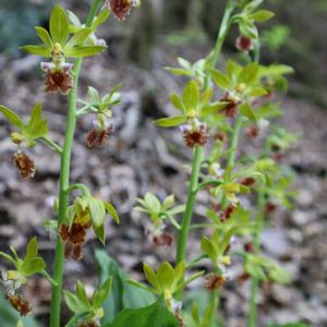 5月9日の山歩き 猿面エビネ ラン科 雨でも決行したのは、そろそろ咲いてる頃だろうと予想してたから。 雨が降り続くと足下が悪くて危険です😥 この子もお猿の顔には見えないのですが・・・。