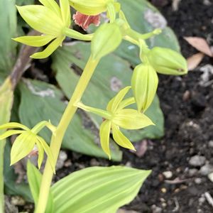 🏷️金曜日の蕾たち サルメンエビネ 🐵お顔はまだ猿に見えませんが 変わっていくのも楽しみです♪ ぷっくり蕾は なんか嬉しいな(*>ᴗ<*)💚