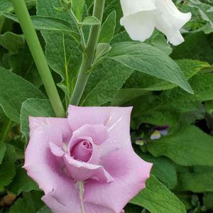 🌹マダム ヴィオーレ 春に新苗で買った半剣弁高芯咲の薔薇。 淡紫の小さな花がつきました。