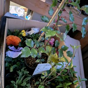 弘前市のdcmの売り場は春になってたので色々買ってきました😃娘は白いクレマチス、私は赤いのを。 バラは買わないけど見るだけ…と新苗見てたら花友さんの素敵なあの子がいる😳‼️この値段だもの即買いでしょ😁でも寒さに弱いはずだったから冬の置き場所…🙄ま、とりあえず立派にお育てしましょう😁