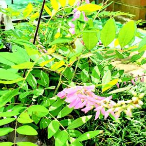 家の庭フジが 小ぶりながらも可愛く 風に揺れてます☺️ ウサギ耳さん🐰 陽の当たらない所にずっと居たので ヒョロヒョロしてます! 栄養不足⁉️