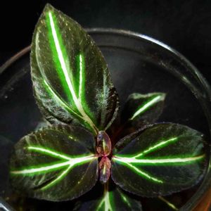 ソネリラsp.ライトセーバー インドネシアなどの熱帯雨林に生息しているノボタン科の植物です😊 葉色は地味ですが、葉の中央に蛍光緑のラインが入るのが特徴です。 本来は高湿度の環境で育てるのが望ましいのですが、時間をかけて常温・常湿環境に慣れさせた株なので、葉の大きさと蛍光ラインの入りがイマイチですが、花が咲いているので投稿します🤗