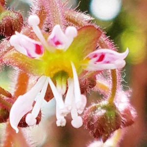 これもみたかったんです😍 筑波山で発見され筑波山にしか生育しない固有種、ホシザキユキノシタです。 下花弁が雄しべ化するんだけど、この個体は一枚花弁が残ってる不完全な形ですね、今、気がつきました💦