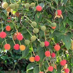 ヤマボウシ 初夏から夏、新緑に白く総苞片が映え、秋は真っ赤な実が賑やかだ🎵足元にもたくさん落ちているけれど、そのままにして帰るf(^^; 庭に常緑ヤマボウシを植えられている家もあるようだが、こちらは落葉樹なので紅葉も待ち遠しい 真っ赤な火曜日🏷️