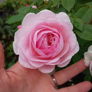 ロサオリエンティスのヘレン❤️ 淡いピンクでカワイイです😁 ひょろりひょろりと横に伸びていくのでオベリスクが必要かも…😳💦 香りはいい香りがしてるけれど、嗅覚が鈍い私にはぼんやりとしか…😭