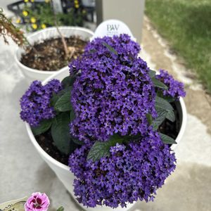 12/27②③に蕾で投稿したヘリオトロープ ブライドブルーの蕾💜まだ小さいけれどやっと咲き始めました☺️ 寄せ植えから室内越冬する為に単鉢植えにしましたが このまま上手く冬越しが出来たなら 今年も寄せ植えにしたいな〜✨ (今は元気でも春先に枯らす事があるので油断大敵💦) 🏷金曜日の蕾たちに参加します💓