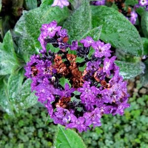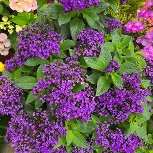 PW「ヘリオトロープ ブライトブルー」 2年目株が良い感じで満開になりました😆 周りで他のお花の手入れをしてると とっても良い香りに癒されます~💜