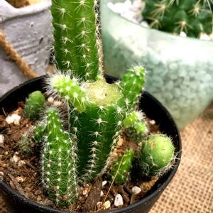 新たなサボテン、カエスピトーサ。 ホームページに掲載されてた白檀っぽい姿が気になっていたのを、見に行ってきました。 まさかそこで白檀そのものに出会ったのは想定外だったけど、今回のお目当はこれ✨白檀は後回し✨ 実物は想像よりゴツかったけど、気に入ったのを買って来ました(´∀`) 右側に、カウボーイタグ・ホームセンター出身白檀を置いて比較。 白檀より一回り以上太くてムチッと✨ もっとモリッとムキっとして、長さもあってニョロっとして、鉢のサイズも大きい(そして値段も高い)のもあったけど、白檀似だから成長早いに違いない✨と思って、ちまっとした形やトゲが気に入ったこれを購入。 帰宅してから調べたら、ミラ属の小型柱サボテン・カエスピトーサ、成長遅いんだそうな…(;ω;) モリッとムキっとニョロっとしたやつを買ってくれば良かったのだろうか…💧