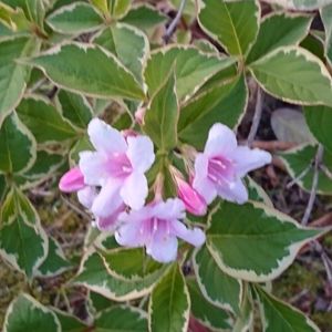 オオベニウツギ バリエガータ 淡いピンクの花と、 ふ入りの葉のコントラストが とても鮮やかですね!