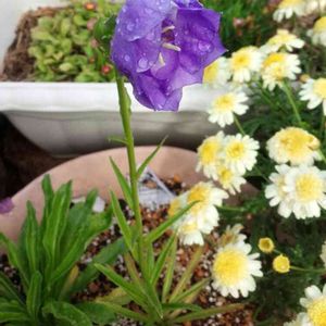 昨日、一目惚れで、お連れしました。カンパニュラファンシーミーです。 花数も蕾もいっぱいあり楽しみです。