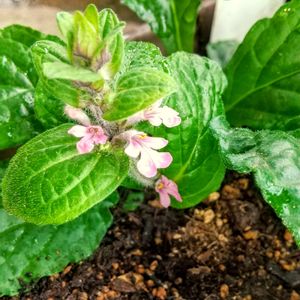 今日、朝見たらアジュガ·ロゼアが咲いてました🙌✨ 私の思っている花丈が長いやつじゃないけど今年見れたのは嬉しい😀✌️ 下にも、いくつか蕾があります😊 下のは一気に咲いてほしいけど、どうかな🤔