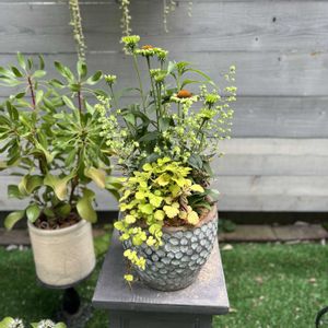 ルブス サンシャインスプレンダー なかなか主役になることは少ないかもしれないですが、 明るい葉色で、寄せ植えに入れると 雰囲気がパッと明るくなる♪ そして強い! 長々と伸びて、そこから根付きます なので、地植えは控えて、 鉢で楽しんでます〜😄 トゲがあることが、玉にキズ💧