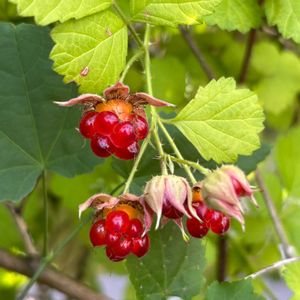 「ルブス サンシャンスプレンダー」の実がとてもかわいいです😍 2株植えて10年くらい経つでしょうか…庭のあちこちに広がりものすごい繁殖力😵💦葉っぱは黄色で可愛いのですが棘があるので抜くのも大変です😖 毎年花は咲くもののあまり実らなかったのですが今年は豊作です💕 赤いビーズみたいですね😆✨ この実は食べられるのかな⁈😳