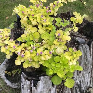 ■Rubus parvifolius 'Sunshine Spreader' ・ルブス サンシャイン スプレーダー(スプレンダー) 去年のGWにお迎えしたルブス。ゴールデンリーフがわさわさと繁り、紫の花が咲きました。 雪ニモ夏ノ暑サニモマケヌ 丈夫ナカラダヲモ ってますが、刺が痛いのだけが難点です。 (以下、おぎはら植物園HPより) バラ科 耐寒性低木(半つる性) 常緑〜半常緑樹 ■ 学 名 : Rubus parvifolius 'Sunshine Spreader' ■ 別 名 : ルブス パービフォリウス、黄金葉ナワシロイチゴ など ■ 花 期 : 春〜初夏 ■ 樹 高 : 10cm前後 ■ 耐寒性 : 強 ■ 耐暑性 : 強 ■ 日 照 : 日向 ■ 用 途 : 庭木 グランドカバー 寄せ植え ■ 原産地 : 日本(原種の主な自生地) キイチゴの仲間でナワシロイチゴの黄金葉品種。とても強健で広がるように育ち、周年葉色がきれいでグランドカバーに良い。ピンクの花と赤い実を少しつけるがカラーリーフとしての観賞価値の方が高い。