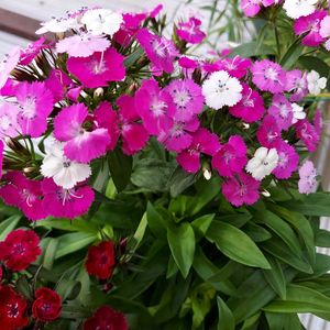 今日のお花の🩷ナデシコ🩷 これは「カラーマジシャン」と言う品種で、白から淡いピンク色、濃いピンク色へと花の色の変化が楽しめる四季咲きのナデシコです🤗💕