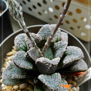 ハオルチア、モルドール。まだ葉はペラペラだけど花芽を伸ばしてきた。