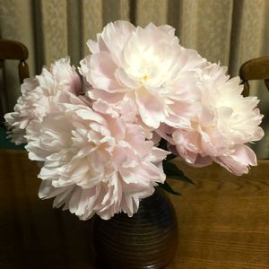 咲き切ったシャクヤクを生けなおしました。 透明感にうっとり。