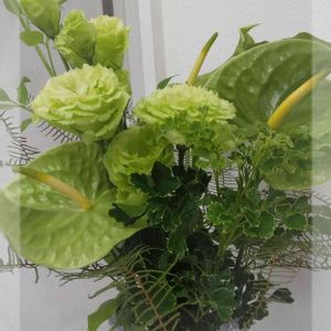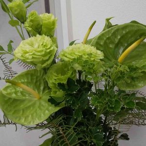 💚アンスリューム💚トルコキキョウ 病院の 受付に いけてありました🌝珍しい色ですね💚