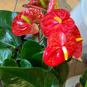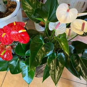 おはようございます😃☔️ 今日の私のお花はアンスリュームです🤗❤️❤️❤️ 出かけ先で見つけましたヾ(๑╹◡╹)ノ"❤️💛❤️ ◎ アンスリューム 科名:サトイモ科 分類:多年草(常緑) 原産地:中・南アメリカ 主な見所:葉(周年)、花(不定期) アンスリュームの特徴 アンスリュームにはいくつか種類がありますが、一般的にはアンドレアヌムの改良品種が出回っています。花は細長く飛び出る部分が花序で、色づく葉のような部分が仏縁苞です。苞の色は鮮やかな赤以外にもピンクや白もあります。 葉は濃緑で弱いツヤがあり、葉柄が長くハートを狭めたような形です。 🏷 真っ赤な火曜日 今日は雨の所が多いですネ☔️☔️ 気をつけてお過ごしください♪♪(((o(*゚▽゚*)o)))♡🍀🍀🍀🍀🍀
