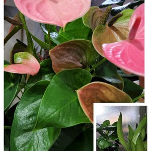 *アンスリューム* フォローさんの紹介の素敵なガーデンに、多肉好きの友人と行って来ました。 可愛いピンクのアンスリュームをお迎え。 下は、くじ引きで頂いた、 サンセベリアとハイビスカス🌺(花終わり、次の花に期待) 素敵なガーデンでした。💛💗💚
