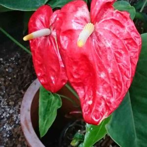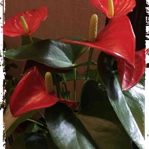 アンスリューム 久々風邪で熱😷 やっと仕事に復帰❗ 職場の花 ヤッパリ赤は元気になるなー😊