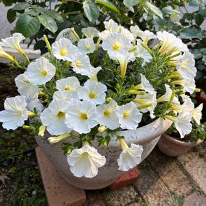 今の時期 今年1番のお気に入りの子🩷 PWスーパーチュニア・ビスタ シルバーベリー ピンクというよりも 白っぽいかも 少し大きな鉢に植え替えてから どんどん花数 ふえてます