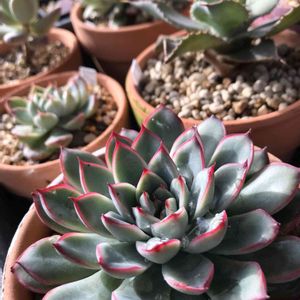 先日仲間入りしました✨ セダム族 ラブロティンクタム(虹の玉)は 元気でぷりぷり♡みずみずしい。 エケベリアには お名前がついて無かったけど、 花うららっぽいかな。 花芽が2つ😃✨ 春ごろ可愛い花が咲くかな〜。