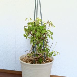 夏に枯れた状態になっていたクレマチス。涼しくなってきたら、旧枝の横から新たな芽?が出てきました。このクレマチスはアトラゲネ系なので、当初、別の植物の種が飛んできて芽が出てきたのだと思いましたが、葉の形がクレマチスだなぁと… これは新芽でこれから枝として伸びていくのでしょうか? それとも土の下の旧枝の節から出てきた葉で、このあとは伸びないのでしょうか? わかる方いませんか?