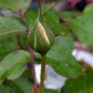おはようございます アンネのバラの蕾 膨らんできました チラッと見えるオレンジ色に ワクワク☺️💓