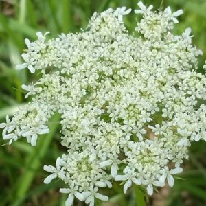 🍀🌻🪴💐🌹🌻🍀 🍀💚💜ノラニンジン(野良人参)💜💚🍀 💐ノラニンジンの花言葉(幼い夢)と いい、ニンジンの花言葉と共通 しています 💐ノラニンジンとはセリ科ニンジン 属の植物で、ヨーロッパ原産で日 本に帰化しています 💐ノラニンジンの花期は6月から7 月で、花は白です、まれにピンク や白とピンクのグラデーションに なることもあります 💐小花が密集して咲き、傘状になっ て咲くのが特徴です 💐ノラニンジン花は1つ1つは小さ いですが、全体で15センチ〜20 センチの大きさの花になります 💐ノラニンジンは食べることができ 毒などはありません、若い株は、 葉、根、花すべてが食べられます 💐和名は、野生種のニンジンの意か らきていて、属名はギリシャ語の daiein(=温める)を語源とし、薬用 にすると体が温まるということか らきています 🍀🌻🪴💐🌹🌻🍀