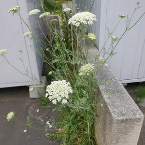 ノラニンジン(野良人参) 今の時期 ちょっと歩けば 歩道脇 路地 のり面 空き地 公園 様々な場所に 隙間と土さえ有れば どこにでも生えている 北海道 広いどう、、、、、、と言えど、、、、、、 時々 刈り取られた場所後にも生えて来る 野良は元気 逞しい 沢山 有ればあったで それも良くみえる 暑い中 妙に涼しげに勝手に生えてるが そんなに邪魔する事なく回りの景色に同化 夏の特権! この真っ白野良達も 冬に成ればすっぽり雪の下↓に、、、、、、
